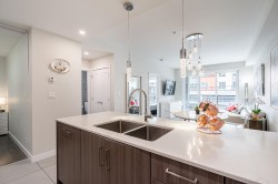 Step into this bright and beautifully maintained 1 bedroom + den home offering 659 sqft of modern living! The open layout features a sleek kitchen with quartz countertops, a spacious living area, and a versatile den, perfect for a home office, nursery, or mini guest space. Enjoy a large private patio, perfect for BBQs and entertaining. The generous bedroom offers a peaceful retreat. Steps from Hamilton Community Centre and Hamilton Elementary, and just a 5-minute drive to Queensborough Landing and the soon-to-open Costco. Includes 1 parking stall and a storage locker. OPEN HOUSE FEBURARY 28 & MARCH 1st FROM 2-4pm