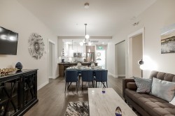 Hamilton Village – West: Brand new and move-in ready! This rare 1-bedroom home offers a spacious east-facing patio with beautiful morning sun, 1 EV parking stall, in-suite laundry, 1 storage locker, and efficient forced air heating and cooling. Inside, enjoy stainless steel appliances and sleek, modern finishes designed for everyday comfort. The East and West, mixed-use buildings, share two indoor amenity spaces, beautiful gardens, a huge playground, an underground parkade and a gym. Part of a master-planned community with a vibrant high street featuring 20+ shops and services at your doorstep (daycare, grocer, coffee shop coming soon!). Close to schools, parks, dyke trails, transit, Costco, Walmart and more. Located right in the centre of the Lower Mainland. *Photos of 2-bed showroom.