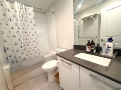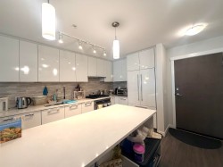"Trafalgar Square I" built by famous developer, Polygon. 849 sq. ft., 2 bedrooms, 2 bathrooms, 1 balcony. 2 parking(1 EV parking) & 1 locker. This unit has modern gourmet kitchen with high-end appliances. Owner just upgrade two bedrooms carpet to laminated flooring. Building amenities includes yoga room, gym, billiard room, meeting room, children's play area. Easy access to Walmart, restaurants, shops and more. Finished area taken from BC Assessment, in suite area measured by listing agent. Asking price below B.C. Assessment $798,000. All measurements are approximate, buyer to verify if deem important.