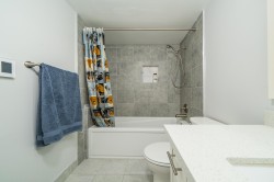 Experience elevated living in this tastefully renovated two-bedroom, two-bathroom courtyard facing penthouse nestled in the heart of the city. Perfectly positioned for convenience and lifestyle. Ten minutes walk to park and Blundell Centre. Bus stop is right outside the building which connects to Canada line. This top-floor unit offers modern comfort, privacy, and exceptional value. Step inside to discover a bright and spacious open concept layout, featuring: an updated kitchen with sleek cabinetry, stone countertops, and stainless steel appliances; stylish bathrooms with heated floor, contemporary finishes and spa-inspired touches; oversized windows flooding the space with plenty of natural light; private balcony with city or garden views; perfect for morning coffee.