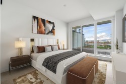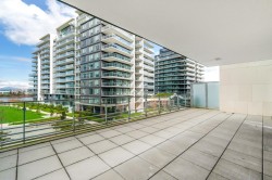 Welcome to this 2B plus DEN of 2 RIVERGREEN complex with spectacular Water and Mountain Views and an over 400' huge balcony in the most prestigious community of Richmond. The Den with a built -in closet could also be the 3rd bedroom of the unit. Proudly developed by ASPAC, this modern design open layout A/C 1280 sq.ft unit features 3 Baths, Miele Appliances, Award-Winning Italian Cesar kitchen with Caesarstone Countertops, & Plank Wood Hardwood floor. This waterfront property comes with 1 oversized parking (close to elevator) & 1 locker, overlooking a fantastic large green park right across from the street. Resort style premium amenities include 24/7 Concierge services, club house, indoor swimming pool, hot tub, steam/sauna, gym, piano and theatre room, very motivated seller, try offer!