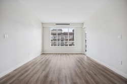HAMILTON VILLAGE by reputable developer ORIS! Rarely available 850 SF 2 BED 2 BATH w/ functional floorplan, 9' CEILINGS, laminate flooring throughout and AC included — open, airy living perfect for everyday comfort. Open-concept kitchen w/ gas stove & ample cabinetry/counter space for all your cooking needs. Bright living area flows to a large fully covered balcony w/ gas hook-up, ideal for BBQs, entertaining or relaxation. Bedrooms are spacious and well-appointed & spa-like ensuite. 2 PARKING & LOCKER. PRIME LOCATION: STEPS to Hamilton Community Centre, Richmond, Van, Bby, New West, Surrey & more! Easy access to transit, SkyTrain, HWY 91, new Costco Business Centre, Queensborough retail & dining, parks, schools+everyday amenities. Exceptional opportunity in a vibrant, connected community!