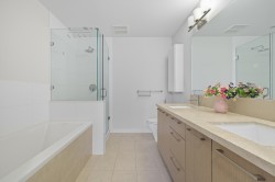This Stunning 2 Bedroom + Huge Den which is being used as the 3rd bedroom! This Well maintained unit features an open living and dining areas are enhanced by elegant oak hardwood floors with Functional kitchen equipped with KitchenAid stainless steel appliances, a gas cooktop, double-nosed stone countertops, soft-close cabinetry, and a new strong range hood. The primary suite includes a walk-thru closet and en-suite bathroom. Premium amenities such as fully equipped fitness centre, indoor pool with hot tub and sauna, party room, and more. Ideally located within walking distance to Richmond Centre, the Oval, trails, Supermarket, SkyTrain, and restaurants, very convenient.