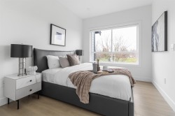 Tucked away along the edge of Hamilton Community Park, Sarena presents a rare chance to own one of just seven exclusive townhomes in a carefully crafted boutique community. Blending timeless design with private outdoor spaces, air conditioning, and direct park access, Sarena offers both quality and connection to nature. This spacious 3-bedroom, 3-bathroom home spans multiple levels, providing flexibility for families, remote work, or guests. The open-concept main floor is perfect for everyday living and entertaining, centered around a gourmet kitchen with premium stainless steel appliances, sleek soft-close cabinetry, and soaring ceilings. A double garage adds convenience, and first-time home buyers benefit from GST exemption. Open House: Saturday, Feb 28th. 12-2pm / Sunday, Mar 1st, 2-4pm