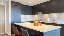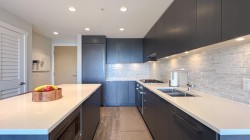 Experience Exquisite Living in Penthouse 518. Indulge in unparalleled luxury in this beautifully appointed 2-bedroom and den penthouse, featuring soaring high ceilings and sweeping city views. With 980 sq. ft. of open, elegant living space, the versatile den offers endless possibilities-ideal as a home office, third bedroom, playroom, or your dream walk-in closet. The one-of-a-kind oversized gourmet kitchen is a chef's dream, complete with high-end appliances, a gas range, and an expansive island perfect for cooking and entertaining. Residents of Berkeley House enjoy exceptional amenities, including a stylish clubhouse, lounge, fitness center, and a children's playground. Perfectly located near premier shopping, dining, and transit. Your dream south-facing home has finally arrived!