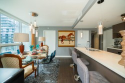 Corner Unit (SE) - Concord Gardens Park Estate, features 2 Bedrooms, 2 Bathrooms, Large den plus TWO BALCONIES for Bonus! Large open concept kitchen with huge quartz countertop island. High end appliances and up to ceiling kitchen cabinets. Spacious master bedroom with large walk-in-closet. All closets have functional built-in organizers. A/C + Heating. Diamond club comes with 5-star resort-like amenities including bowling alley, badminton court, indoor swimming pool, private screening room, sauna & steam, basketball field, games room, meeting room & yoga. Walking distance to Capstan Way Skytrain station, close to transit & shopping. Easy to access to Vancouver.