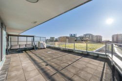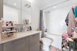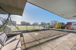 Welcome to TEMPO air-conditioned concrete building in the heart of Richmond! This 972 sqft Jr 3bedroom corner unit, plus a HUGE 570 sqft rooftop patio — perfect for outdoor living, gardening, and entertaining. Enjoy expansive living space, beautiful city and mountain views, and a functional layout. Features a modern kitchen with stone countertops, stainless steel appliances, gas cooktop, and laminate flooring throughout, along with 1 parking and 1 locker. Fantastic amenities include an indoor pool, hot tub, gym, yoga studio, rooftop garden and party room etc. Prime location, walk to SkyTrain, Richmond Centre, Lansdowne, Olympic Oval, T&T, and restaurants. School catchment: Brighouse Elementary & Richmond Secondary.
