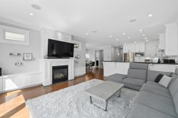 Quite area,radiant heating, theatre with built-in speakers throughout the whole house & garden. Recreation room & built in wine cabinets. fully fenced backyard , outdoor gas fireplace and spacious garden provides outdoor entertainment anytime of the year, rain or shine. Double garage & RV parking. Seperated entrance 2 bdm can be rented, easy to show.