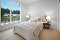 Discover 206 at Tiller & Grace — Cordova Bay’s newest luxury building — a 1,015 sq.ft. northwest corner 2-bed/2-bath home built by GT Mann with exceptional craftsmanship throughout. This efficient open-concept layout offers a spacious living, dining, and kitchen area filled with warm west-facing light. Bedrooms are thoughtfully placed on opposite sides of the home for comfort and privacy. Premium features include a WOLF induction cooktop and oven, panelled Fisher & Paykel fridge/freezer, Fisher & Paykel drawer dishwasher, and Harbour City Kitchens millwork with rift-cut white oak cabinetry and solid birch dovetail drawers. Enjoy year-round comfort with fully ducted air conditioning. Parking and storage are included, with optional EV charging available. A perfect home for those seeking a foothold in an elevated, prestigious building just a 5-minute walk to the beach.