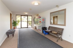 2-level, top-floor corner unit offers the spaciousness & feel of a townhouse w/2 balconies. This family-friendly complext is part of a well-managed strata. Bright spacious living room boasts a vaulted ceiling for an airy feel & a cozy wood-burning fireplace perfect for those cool winter eves. LRG kitchen layout w/eating area.Updates include new flooring, fresh paint throughout, & thermopane windows/doors. Large MSTR BR is located next to the 3 PC BA, & the versatile “dining area” can easily convert into a 3rd BR, complete w/private balcony & closet. Upstairs, the LRG BR features a skylight closet & a 2 PC BA, could be used as a BR, office or family room. Enjoy ample storage space, including a separate storage locker. Bonuses include a common guest suite & free laundry. This centrally located unit is within easy walking of distance of both Mayfair & Uptown malls, & is located on a direct busroute with easy access to UVIC & Camosun College, this one is definitely an ideal location.