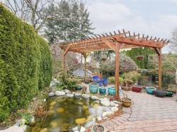 Built in 1986 on a 7589 sqft south facing rear yard lot located on a quiet cul-de-sac on the southern slope of Mt. Douglas. The Hollyridge subdivision is truely a special location that offers home owners a light and bright location with a gently sloping and curved roadway, underghround services and mature trees and land scaping. A near level entry 3 bedroom, 3 bath home thoughtfully designed and built around the natural topography of the lot offering a 2 step front entry and generous rear patio with pond and trellis overlooking the private fully landscaped rear yard. Features including an attached double car garage, primary bedroom and laundry on the main, fireplaces in the living and family rooms, and a full height daylight walk out basement makes this ideal for those looking for secondary accommodation potential and/or a recreation room. Walking distance to PKOLS Mt. Douglas park, the University of Victoria and the local shopping at the Root cellar, University Heights Shopping center