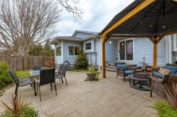 Step inside and experience a bright, welcoming home with beautiful Olympic Mtn and distant ocean views. This rancher has been transformed with upgrades including newer garage door, flooring, updated interior, exterior light fixtures, & newer windows. Updated bathroom flooring, vanities and faucets, appliances, patio door, and gutter protectors. Warm & sunny, this home offers 3 bedrooms and 2 bathrooms with a cozy family room flowing off the kitchen & eating nook plus direct access to the fully landscaped, fenced backyard with a generous patio and an oasis of fruit trees. Ample room for a formal dining area with space for a full dining table and hutch. Comfort features include a heat pump, a charming fireplace, and skylights that enhance the natural light. Offering 1,655 sf of living space on an .22 acre lot connected to sewer, this home is packed with value and thoughtful updates. Underneath there is a massive, easy access crawlspace for ample storage. Don’t miss your opportunity.