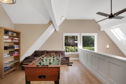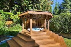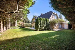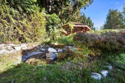 One of a kind, custom Brackendale home on a large, private corner lot framed by mature hedges. Enjoy the hot tub under a covered gazebo, peaceful garden pond, and all-day sun as it moves across the yard. A double garage and lean-to shed offer plenty of space for toys and storage. Inside, a stunning stone wood fireplace anchors the living room with mezzanine, complemented by a gas fireplace, solid oak floors, shaker doors, and board-and-batten detailing. Two bedrooms and one bath up, plus two bedrooms and two baths down. A warm, character-filled home in the heart of Brackendale — a true must-see.