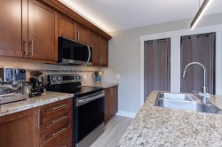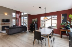 Bright and unique corner 3-bedroom, 2.5-bathroom townhome offering breathtaking panoramic mountain views, including spectacular views of the Chief. Soaring vaulted ceilings and oversized windows flood the space with natural light while showcasing the surrounding landscape. The open-concept kitchen features a granite island, generous pantry storage, and direct access to a spacious deck—perfect for soaking in the views. Upstairs you’ll find two bedrooms, each with its own ensuite, plus a rarely available main-level bedroom for added flexibility. Just steps to estuary trails and all downtown amenities. Includes two full-size underground parking stalls and a secure private storage room (5’8 x 14'7”). Open House Sunday. Feb. 22nd 12-2pm.