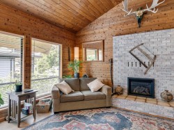 Excellent revenue potential, warm and inviting home featuring rich cedar accents, skylights that fills the space with bright natural light and charm and a cozy gas fireplace. This spacious 5-bedroom + den/office plus 5-renovated bathroom home includes a fully self-contained I-bedroom in-law suite and a totally separate nanny studio. Enjoy stunning mountain views from the fenced yard or step out from the dining room onto the wrap around balcony. Features include 7 parking spots, RV/boat space, ample storage, and workshop area. Situated in a central prime location across from the Squamish Golf Course, a short walking distance to shopping, dining, and the forest trails.