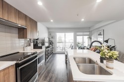 The perfect condo in the perfect location in downtown Squamish. Close to all the restaurants, shopping, cafes, and all other conveniences and attractions that Squamish has to offer. Quiet setting off the main street facing a majestic Tantalus Mountain backdrop. Large one bedroom suite with a semi-on-suite bathroom and the possibility of creating a spacious second bedroom in the open flex area. The open kitchen has a functional island that doubles as a sit-up eating area. The generous sized living room opens up onto a covered outdoor space looking over downtown Squamish and its amazing natural setting. Includes one parking stall and one storage locker.