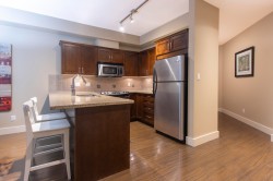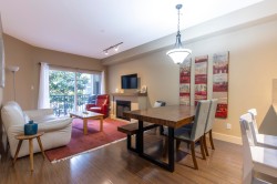 Extremely well cared for 1 bedroom and den, south west facing apartment in The Artisan. It features a bright primary bedroom with walk-in closet, well appointed main bathroom with tile floors and tub surround, lovely kitchen with granite counters, 4 s/s appliances & tile floors, living room with a fireplace opening to the private, south west facing balcony and a separate storage room. The Artisan offers wheelchair access, elevator, a secure, well lit parking garage, bike storage, garbage pick up and mail box service. All within a short walk to the Library, Marina, fine restaurants, coffee & donut shop, shopping, transit and much more. Everything one needs for a comfortable & affordable life style in the very vibrant & scenic downtown Squamish.