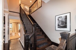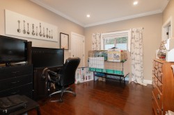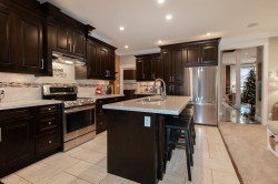 Location, location, location. Nestled on a quiet, family-friendly street, this exceptional home blends warmth, space & sophistication. The home features a charming wood-burning fireplace, an open-concept living and dining area filled w/natural tight, and a separate spacious family rm. A private office offers flexibility & could be easily transformed into a thoughtfully designed in-law suite. 5 spacious bedrooms and 4 beautifully appointed bathrooms, this home is ideal for both family living and entertaining. The open-concept layout highlights a chef-inspired kitchen w/ a generous centre island, rich hrdwd firs, and plush carpeting in the bedrooms creating a seamless balance of comfort & style. A dbl garage and 5 additional parking provide outdoor storage and space for the entire family.