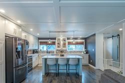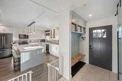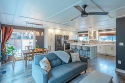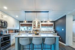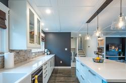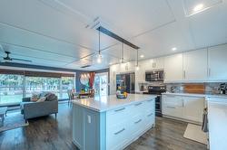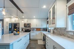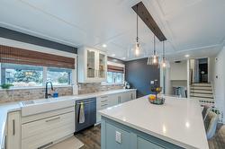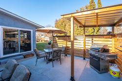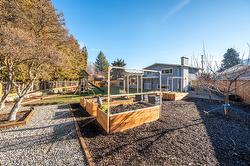 Amazing family home in an excellent location just minutes from downtown Summerland. This beautifully updated 3 bedroom, 2 bathroom home was fully renovated less than five years ago with quality finishes throughout, including new siding, eavestroughs, downspouts, fascia, garage door, on-demand hot water, updated flooring and paint, new windows, modern fixtures, and a stunning designer kitchen featuring quartz countertops, elegant cabinetry, and an oversized island perfect for gathering. New furnace, A/C with heat pump. The fully fenced backyard is a dream, complete with new cedar fencing, raised garden beds with full irrigation, and an abundance of fruit trees and berries—including strawberries, raspberries, blackberries, blueberries, plus peach, pear, apple, and plum trees. Enjoy evenings around the outdoor fire pit or make use of the charming chicken coop for your own hobby farm experience. The double car garage has new insulation, and the property offers convenient RV/boat parking. With peaceful Aneas Creek running behind the home, this home is ready to be enjoyed to live the best of the Summerland lifestyle.