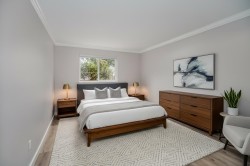 Delightful, beautifully updated 2 bedroom 2 bath end unit apartment in Semiahoo Court, a 27-unit boutique building in the heart of Sunnyside Park! This home was the original show home for the development, & boasts high quality window coverings, extensive millwork, gorgeous modern lighting, freshly painted throughout Oct 2025, beautiful floor to ceiing tiled fireplace, custom closet organizers, laminate flooring & high end Maytag washer/dryer are 2 years young. Excellent location in close proximity to transit, shopping/services, walking trails, fine schools & more. Inviting welcoming foyer at building entrace & large amenities space for easy year round entertaining. Thrift Elementary Semiahmoo Secondary. Available for quick Completion. Some images virtually staged. Open House Nov15 1-3PM