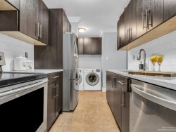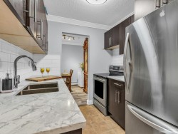 RARE OPPORTUNITY – One of the few units with a PRIVATE ENTRANCE, offering the feel of a TOWNHOUSE. This IMMACULATE 2 BED + 1 BATH ~1,000 sqft GROUND FLOOR UNIT in the highly sought-after GLENCOE complex features its OWN IN-SUITE LAUNDRY, a spacious PATIO, and a charming PRIVATE GARDEN. Fully UPDATED - Quality updates include CROWN MOULDINGS, fresh paint, UPDATED KITCHEN - Cabinets, backsplash, QUARTZ countertop, SS APPLIANCES, new FLOORING, and updated BATHROOM. Enjoy RESORT-STYLE AMENITIES including GYM, INDOOR POOL, SAUNA, BIKE ROOM, & CLUBHOUSE. GREAT LOCATION - just steps from Bear Creek Elem, Todd Cres & Frank Hurt Park, FreshCo, Newton Rec Ctr, Newton Library, Newton Pond Park, Shopping, Transit and so much more!
