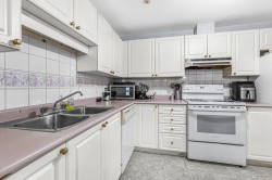 WELCOME to Cardinal Court! BIG 01 BED, 02 BATH unit with 01 under ground parking, Bedroom with luxury ensuite, dining area, beautiful bright corner unit with outdoor area. BONUS : Gas fireplace and Heat included in strata fees. EXCELLENT location, walk to major shopping like Superstore, Save On Foods, Restaurants, transportation and recreation center (new wave pool), Library, parks and much more.