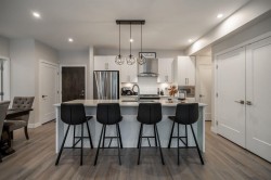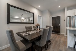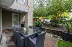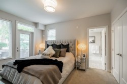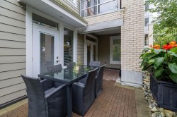 Welcome to Headwaters! We are proud to showcase this immaculate ground level corner unit featuring almost 1000 sq ft of living space! You will fall in love with the open floorplan with spacious gourmet kitchen featuring quartz countertops, stainless appliances with Whirlpool gas range, oversized island and generously sized dining area with French doors leading to your private outdoor patio! The home offers a massive primary bedroom that has a spa like 5 piece en-suite with double vanity, heated floors and huge walk-in shower. The Headwaters Club features the business center, clubhouse with kitchen, full gym as well as guest suite! A location that is tucked away yet minutes to schools, golf courses, restaurants, transit !School catchment: Morgan Elementary/Grandview Secondary