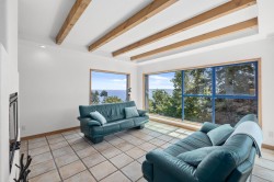 Renowned local and Vancouver Architect " Mark Ankenman" designed and built this home for their own personal use. Situated on the BLUFF, Ocean Park, quiet setting with great ocean views and privacy from a City Parkland. This home was over Engineered, built to high quality standards and still to today sits on this Bluff lot - is solid and has great bones. Awaits some one to update and make it a spectacular residence again. Ideal home for families or a Professional couple, bedrooms that are split with the Primary on the top and additional rooms on lower level. In floor radiant heating, open concept floor plan and some bonus storage are under the suspended driveway slab. Stairs down to the beach area and ocean, right beside the home by way of a City Park - perfect Beach lifestyle offered.