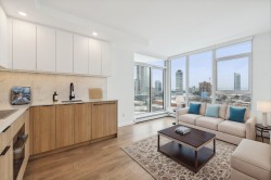 Welcome to Georgetown One by Anthem, a premier master-planned community in Surrey City Centre! This stunning 14th-floor 2 BED + 2 BATH unit boasts a spacious L-shaped kitchen with high-end Bosch & Blomberg appliances, plus a large balcony with breathtaking city views. Thoughtfully designed with bedrooms on opposite sides for added privacy. Enjoy top-tier amenities, including a lounge, outdoor theatre, co-work/study space, pet park, fitness centre & yoga studio. Walking distance to Surrey Central SkyTrain, SFU, KPU, shops & restaurants. Pets & rentals allowed! 1 Parking + 1 Storage incl.