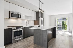 WELCOME to On the Course II by Dawson + Sawyer, an exclusive boutique community of 22-homes backing along The Hills at Portal Golf Course. Bright 4 bed, 3 bath home showcases timeless MODERN design and METICULOUS care, making it truly move-in ready! Discover SOARING ceilings, quartz countertops, stainless steel appliances, gas range, OVERSIZED entertainer’s island, and durable laminate flooring. OPEN concept living space blends style and functionality. Spacious patio with natural gas hookup makes outdoor entertaining effortless. SINGLE-car garage plus driveway parking. Well-managed, pet-friendly complex with clubhouse, playground, and community garden. Walk to Douglas Elementary, Dufferin Park, and Peace Arch Park. Enjoy the very best of South Surrey living in family-friendly SUMMERFIELD!