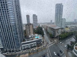 D’corize concrete Hi-Rise at rapidly growing Surrey city center. South-East Corner breathtaking panoramic mountain and city view. 9' high ceilings. Perfect and convenient location in the heart of City Center prime area while enjoying quietness and family activities at the nearby parks. Bus stop right at building front entrance and Surrey Central skytrain station is conveniently located at two buildings away. Central city mall is 5 mins walk. Next to new Surrey city hall, new library, SFU campus, central city mall, T&T, Walmart, etc. Excellent investment property or affordable budget-friendly spacious 2-bedroom & 2-bath condo with almost 920 s.f. for family use. Includes 1 parking and 1 locker.