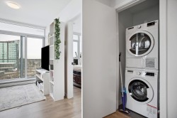 Georgetown One by Anthem – the flagship 30-story tower in Anthem’s visionary master-planned community at the heart of Surrey City Centre. Perfectly positioned within walking distance to top amenities, including shops, restaurants, Surrey Central SkyTrain Station, SFU & KPU campuses, the upcoming UBC campus, and several parks. Enjoy access to 30,000 sq. ft. of premium amenities, including an entertainment lounge, co-working space, outdoor theatre, dog run, fitness center, and guest suite. This bright and efficient southwest corner 2-bedroom home boasts a sleek linear kitchen outfitted with a 24” BOSCH and BLOMBERG appliance package. The spacious master bedroom extends onto a generous 158 sq. ft. outdoor balcony, perfect for soaking in the city views. 1 Parking (EV) 1 Locker