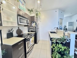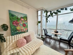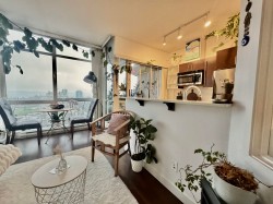 Welcome to this bright and modern one-bedroom condo perched on the 16th floor, offering breathtaking panoramic views of Vancouver’s skyline and the stunning North Shore mountains. Just steps from the SkyTrain, this home provides unbeatable convenience for commuters and city explorers alike. The open-concept living space is filled with natural light and extends onto a private cafe style balcony—perfect for morning coffee or sunset unwinding. The well-designed layout offers comfortable living with a spacious bedroom and thoughtful finishes throughout. Complete with one parking stall and a dedicated storage locker, this condo delivers both comfort and practicality in one of the city’s most connected locations.