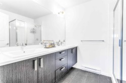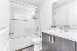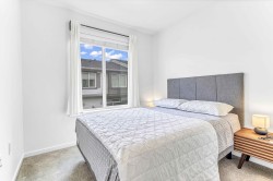 Welcome to Kings Landing by Dawson + Sawyer! Nestled in the Bear Creek area, close to shopping, amenities, and restaurants. This 4 Bed 4 bath townhome plan features a fenced and gated front yard with bedroom and full bathroom on the ground level. FRESHLY PAINTED HOME & SMART THERMOSTAT. BONUS: upgraded FRIDGE with filtered water and ice. Large living room and over height ceilings, house sized kitchen with an island and dining room on the main level with built-in cabinetry. Primary bedroom is large enough for a king sized bed, big closet and private spa-like ensuite with double sinks. Side by side double garage parking with EV charger pre-wire. Faces the greenbelt! Pets and rentals allowed! Book for Private Viewing!