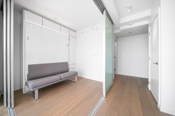 Great investment opportunity. Highly desirable Micro2 condo unit at Prime On The Plaza Tower that's in the heart of DT Surrey. This efficiently designed large studio can reconfigure as a two bedroom unit. Semi-furnished with two built-in wall beds and movable glass wall partition system. Includes one parking stall and storage locker. Amenities on 5 floors such as gym, sauna/stream rooms, music rooms, offices, yoga room, party rooms & more. Just steps from Surrey Central Station, bus loop, Surrey Central City Mall, SFU, KPU, etc. Great for first time buyers and investors alike. Open House Nov 9th 2-4pm