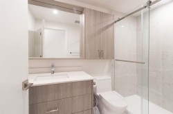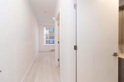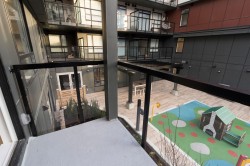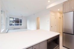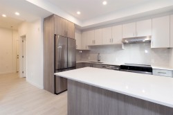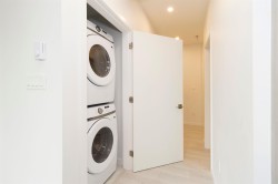 Welcome to Radley, 6 level condo development by West Fraser. This charming home offers 2 BEDROOM & 1 DEN, an open floor plan featuring a LARGE QUARTZ COUNTERTOPS, Samsung SS appliances, including an ICE MAKER FRIDGE. Laminate flooring throughout, West-facing covered deck, primary bedroom spacious walk-in closets, bedrooms CUSTOM-BUILT CLOSETS ORGANIZER, soft-close drawer, baseboard heating. With in-suite laundry, 1 parking spot, and 1 storage unit, convenience is at your fingertips. Just steps from the bus stop, Surrey Central SkyTrain, and SFU Surrey campus, everything you need is close by. The building offers fantastic amenities, including a fully-equipped BBQ area, lounge seating, entertainment rooms, a fireside lounge with kitchen, fitness center, and yoga studio.