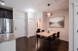 This bright 2 bedroom, 2 bathroom home offers a layout and finishes that stand apart from the typical condo. The spacious kitchen features a striking wood hood fan, a detail more often found in detached homes, and opens into a generous living and dining area ideal for both everyday living and entertaining. The cross-suite bedroom design provides excellent separation and natural light, with views facing onto a green space. The primary suite is oversized with a large ensuite, separate tub, double sinks, and a walk-in closet. Additional features include separate laundry, a storage room, two parking stalls, and a storage locker. Walk to shops, restaurants, coffee, grocery stores, and Willowbrook Mall. Close to the new and future SkyTrain, making this a strong long-term investment.