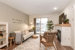 Welcome to Sunset Grove, a highly sought-after community offering comfort, convenience, and a peaceful setting. This bright & spacious 750 sqft, 1 bedroom plus den home is situated on the quiet side of the building, overlooking the garden & greenbelt for a serene outlook. Inside, you’ll find a cozy gas fireplace, quartz countertops, stainless steel appliances, and the convenience of in-suite laundry. The home includes 1 underground secured parking stall & a storage locker, with plenty of street parking available. Enjoy unbeatable walkability with transit just one block away, Willowbrook Mall three blocks away, a short walk to Katzie Elementary, and quick access to the freeway. Rentals are allowed, making this a great option for both homeowners and investors. A must see to truly appreciate!