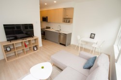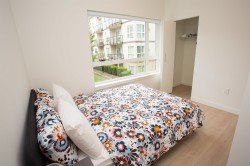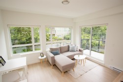 Welcome to Quattro-5! a newer 1-bedroom unit in a meticulously planned community designed for comfortable living. This residence boasts 8-foot ceilings and expansive windows that flood the space with natural light. The kitchen is a highlight with its modern design features, including stainless steel appliances, quartz countertops, LED flush mount lighting, and a selection of wood grain and solid color cabinets. Wide plank flooring and soaring ceilings add to the modern aesthetic. Enjoy a range of amenities such as EV prewired parking, a well-equipped gym and yoga room, a cozy fireside lounge, community gardens, a workshop, outdoor BBQ areas, and a playground. Centrally located near shopping malls, restaurants, SFU, and the GATEWAY Skytrain Station to Downtown, Vancouver, New West & Met