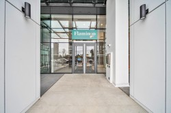 Welcome to Flamingo One, a new icon in Surrey Central by ITC, offering a bright one-bedroom residence with contemporary living features. Enjoy premium integrated appliances, elegant quartz countertops, sleek flat-panel cabinetry, and wide-plank flooring. Year-round comfort is ensured with air conditioning and a heat pump, complemented by an expansive covered balcony. The building boasts curated amenities, including a fireside lounge, BBQ terrace, social room with a full kitchen, hobby studio, state-of-the-art fitness center, theatre, children’s play area, and dog park. Ideally located just five minutes from Gateway SkyTrain, with shops nearby, and includes 1 parking space and 1 storage locker.