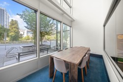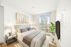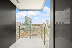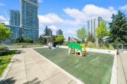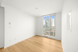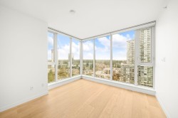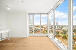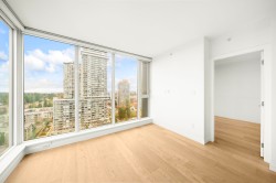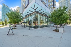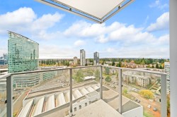 Welcome to Prime on the Plaza — a bright, quiet SW corner home offering one of the most spacious and efficient 2 bed/2 bath layouts, with bedrooms thoughtfully placed on opposite sides for maximum privacy. Enjoy A/C (always a bonus), 9' ceilings, hardwood floors, custom roller blinds, and excellent in-suite storage. The kitchen features soft-close oak cabinetry paired with a modern European appliance package. Both bathrooms feel spa-inspired, one with a frameless glass shower, another is a deep soaker tub, marble tile, and contemporary fixtures. Amenities include a full gym, yoga studio, sauna, steam room, study rooms + more. Steps to Surrey Central SkyTrain, Library, and Central City Mall. 2-5-10 Warranty is still in play. Open House - Feb 28, 1-3PM / Mar 1, 12-2pm