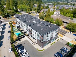 Elevated living awaits at LUXE in sought-after Sullivan Heights. This impeccably maintained 2-bedroom, 2-bath residence offers refined modern design and year-round comfort with air conditioning. Expansive windows bathe the open-concept living space in natural light, while the chef-inspired kitchen impresses with quartz surfaces, a statement island, and premium stainless steel appliances. Step onto your private balcony and enjoy serene open views. Complete with two secured parking stalls and a storage locker, this home offers both sophistication and practicality. Ideally positioned near top schools, boutique shopping, dining, parks, transit, and Hwy 10—luxury and convenience perfectly combined.