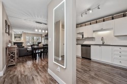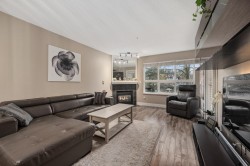Prime central location! Bright and spacious 2-bedroom, 2-bath condo featuring an open floor plan, cozy gas fireplace, and a covered balcony overlooking a peaceful setting. The primary bedroom includes a walk-in closet, while the second bedroom is conveniently situated next to a full bathroom with a standing shower. Updated kitchen with newer appliances and a window for natural light. Light laminate flooring throughout and in-suite laundry. Well-managed 4-storey building within walking distance of shops, restaurants, medical offices, schools, Scott Road Centre Mall, and transit. Includes 2 parking stalls and a storage locker. Building amenities include a clubhouse, workshop, and bike room. Pet-friendly. Book your showing today! O.H SUN 2-4PM