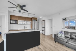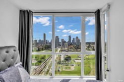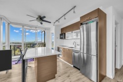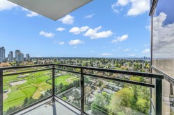 Welcome to this exquisite 2-bedroom, 2-full bathroom corner unit condo with den, boasting quality finishes including quartz counters in the kitchen and bathrooms, floor-to-ceiling windows, and full-size bedroom closets. This stunning unit offers panoramic views, two parking stalls, and a bonus kitchen island. The self-contained den allows for focused work time, while the proximity to Gateway station, Central City, SFU, and schools ensures convenience. Don't miss the open house this weekend!