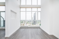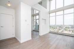 **MASSIVE 16 FT Ceilings, bet you've never seen that before*25th FLOOR EAST FACING PENTHOUSE** Absolutely STUNNING Unobstructed 180° views of the Fraser River, Mount Baker & City VIEWS** NEW paint, fridge, Real Wood floors, baseboards & dishwasher. 1 bedroom + DEN & 1 bathroom. OPEN concept Living/Dining & a good size kitchen with QUARTZ countertops & Stainless Steel Appliances, floor to ceiling windows throughout. Includes 1 SECURED parking stall, In-suite Laundry & storage locker. Directly across the street from Gateway SKYTRAIN station, walking distance to SFU, City Hall, Surrey Central Shopping Centre & close to all major transportation routes. RENTALS ALLOWED. Strata fee covers Gardening, water, sewer, GYM, Garbage pickup, HEATING, Management & insurance. Call for a viewing or info.
