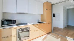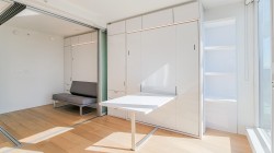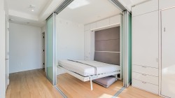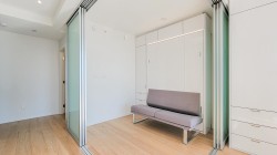 Experience versatile living in Prime on the Plaza! This intelligently designed 1-bedroom + flex unit transforms effortlessly with built-in Murphy beds, a sofa, dining table, and adaptable partitions - ideal for guests or share living. Located on the 25th floor, enjoy stunning Surrey Central Views and abundant natural light from your private balcony. The sleek kitchen features quartz countertops, a built-in stovetop, oven, dishwasher, and in-suite laundry. Resort-style amenities include a gym, sauna, lounge, study rooms and a rooftop garden. Steps from SkyTrain, SFU, City hall, Walmart, and more - urban convenience at its best!