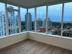 Built by Bosa! This corner unit on the 29th floor has great views of Mountains, River from the Living Room and pool can be seen from the bedrooms. This complex is in the heart of the city, close to bus stops, library, city hall and the building has a provision of electric vehicle charging. Kitchen has an extendable dining island. The building provides amenities across three floors, which includes exercise room, meeting spaces, party room, a lounge, outdoor pool, BBQ area, bike storage, and more. It's conveniently located near the Skytrain, SFU, UBC (in the future), Kwantlen Polytechnic University, grocery stores, retail, and restaurant.