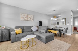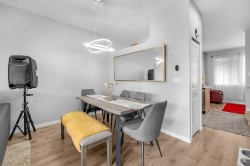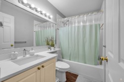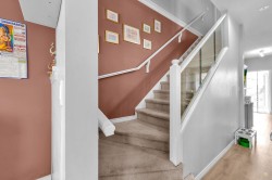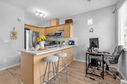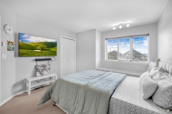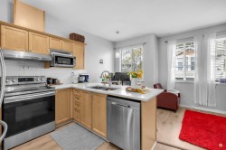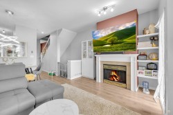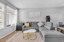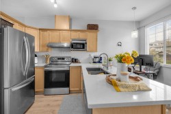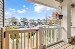 Duplex Style Townhouse! Discover the charm of this bright and spacious 2-bed, 2-bath townhome with 2 parkings located in family-friendly atmosphere, lush green spaces & convenient amenities. Offers fenced-in yard, contemporary laminate flooring under bright windows and high ceilings. Kitchen boasts stainless steel appliances and crisp quartz counters with a convenient breakfast bar. Adjacent laundry and naturally lit bedrooms, including a primacy suite with an ensuite and walk-in closet, provide comfort and convenience. Steps away from school, park, Starbucks, Fresh St. Market, McDonalds, Shoppers Drug, 152 St, Hwy 10 & King George. Walking distance to new French Immersion school - Snokomish Elementary. Call now to book appointment. Open House Saturday Dec 20 - 12:00 PM - 2:00 PM