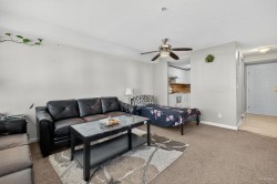 Welcome to this beautifully kept and very spacious condo featuring a covered balcony, 2 parking stalls, and in-suite laundry. The open living area is filled with natural light and includes a cozy gas fireplace (gas included in strata fees!). The primary bedroom offers a full ensuite plus custom closet organizers, while thoughtful updates over the years make this home move-in ready. Enjoy unmatched convenience with Superstore, Costco, Tim Hortons, transit exchange, banks, schools, and parks all within walking distance. A perfect blend of comfort and location—this home is a must-see!