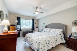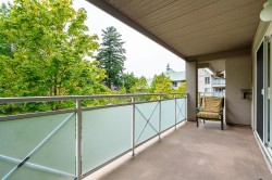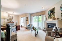 Bright SW facing CORNER with NO UNIT ABOVE! This gorgeous 2bed/2bath feels like a rancher with a sprawling layout featuring XL windows, an abundance of natural light, breakfast nook, tons of closet space and a huge primary bedroom with room for a king bed set. Amazing, central location that is walking distance to all amenities, walking trails and a short drive to WR/Crescent beach with easy access to Hwy99. Enjoy your private, south facing balcony overlooking the quiet courtyard with cherry blossoms in the spring and lush trees in the summer/fall. 2 PARKING spots & 1 storage locker. Strata fee includes gas fireplace & hot water.